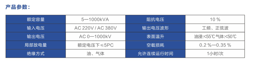 備有氣體絕緣、變壓器器油絕綠、干式環氧樹脂絕緣等形式試驗變壓器,可根據用戶需求自行選擇搭配;