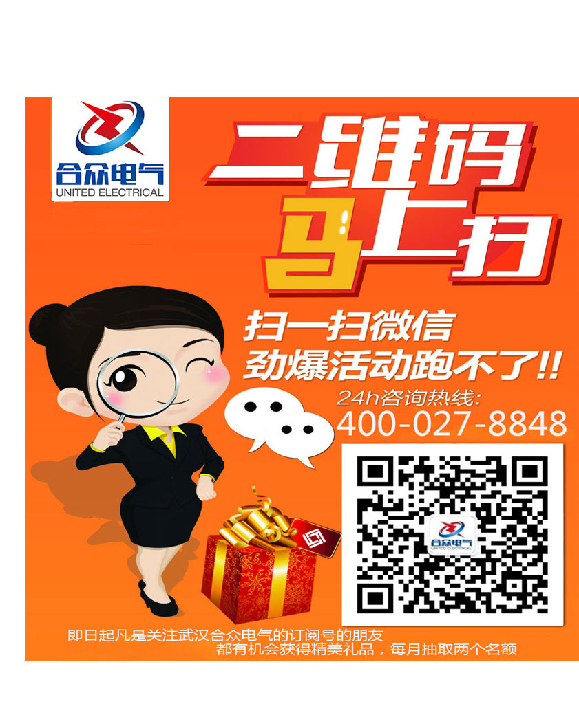 為了讓每位關(guān)注合眾電氣的朋友能在第一時(shí)間了解公司的動(dòng)態(tài),獲得線上支持,同時(shí)也是為了更好的服務(wù)于廣大新老客戶。因此決定推出:掃微信二維碼,贏精美禮品的活動(dòng)。即日起凡是關(guān)注合眾電氣訂閱號(hào)的朋友都有機(jī)會(huì)獲得我們精心準(zhǔn)備的精美禮品,每月抽取兩個(gè)中獎(jiǎng)名額!我們會(huì)在每個(gè)月的12號(hào)公布獲獎(jiǎng)名單,歡迎大家踴躍參與!