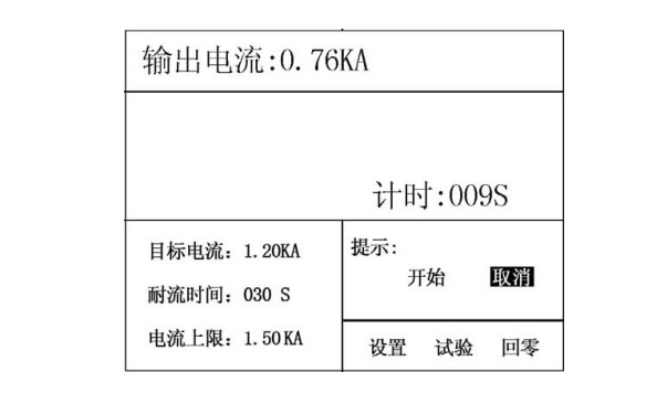 結(jié)果顯示區(qū):用來顯示試驗結(jié)果數(shù)據(jù),顯示計時時針、平均輸出電流或最大輸出電流、耐流時間或沖擊時間等。