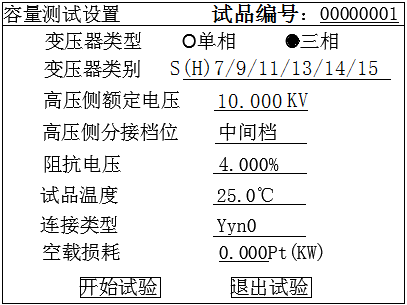 實(shí)測(cè)容量:該項(xiàng)顯示實(shí)際測(cè)量的變壓器的容量。